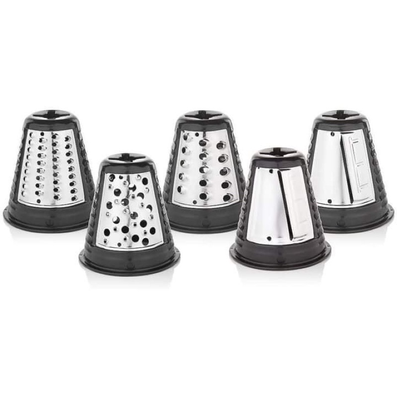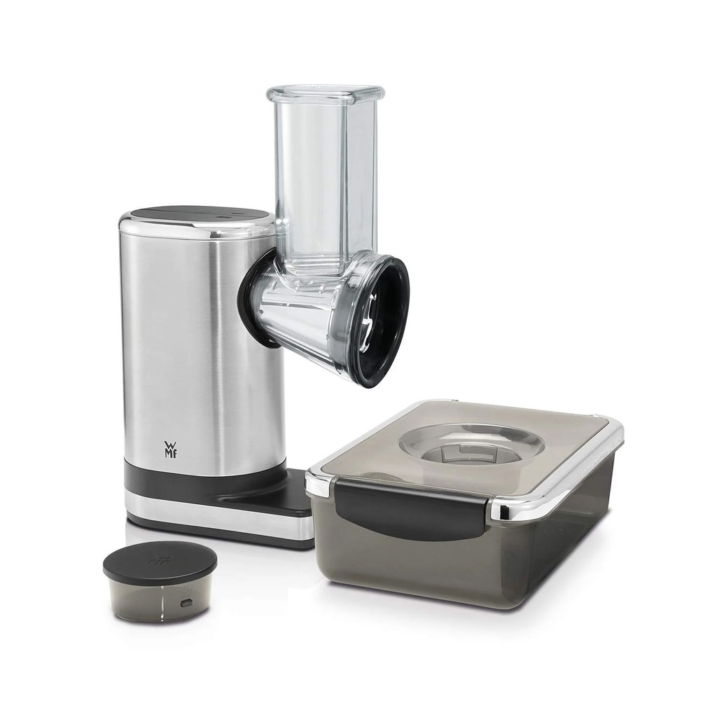- Công nghệ Wmf Perfect Cut: 5 đầu cắt khác nhau được làm bằng thép không gỉ để cắt, bào và rọc.