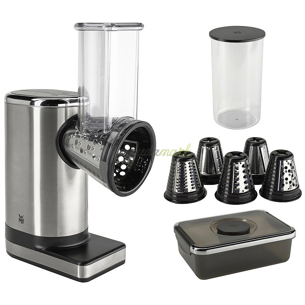- Máy thái rau đa năng WMF cắt được tất cả các loại trái cây và rau quả, từ cà rốt đến thảo mộc, thậm chí cắt các thành phần cứng hơn như các loại hạt hoặc lát pho mát vào bát mang đi thực tế. Công nghệ cắt hoàn hảo WMF để cắt, bào và cắt: 5 hình nón có thể hoán đổi cho nhau của các kiểu cắt khác nhau.