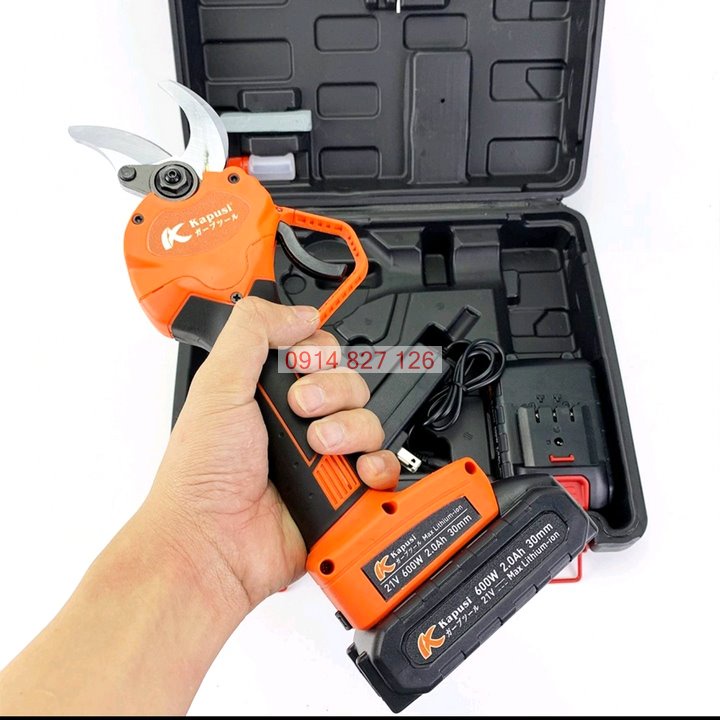 Kéo điện cắt tỉa cành cây Kapusi Kìm điện tỉa cây 600w, Kéo điện pin Lithium, Cỡ 30mm• Hãng Kapusi Japan