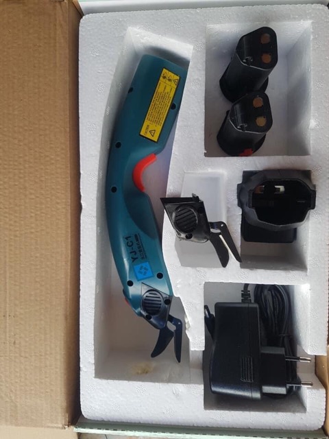 Máy cắt vải cầm tay sạc pin mã số YJ-C1, lưỡi kéo nhỏ gọn nên dễ dàng luồn lách cắt các đường cong nhỏ gắt, độ bền cao, hoạt động êm ái, cắt mọi loại vải. Sử dụng rất phù hợp trong việc cắt mẫu thiết kế, thợ may sử dụng cắt vài lớp vảiBộ sản phẩm gồm 1 máy, 2 lưỡi dao, 2 pin, 1 sạc pin. Thời gian sử dụng pin lâu (3 đến 4 giờ), sạc pin nhanh khoảng 30 phút là đầy