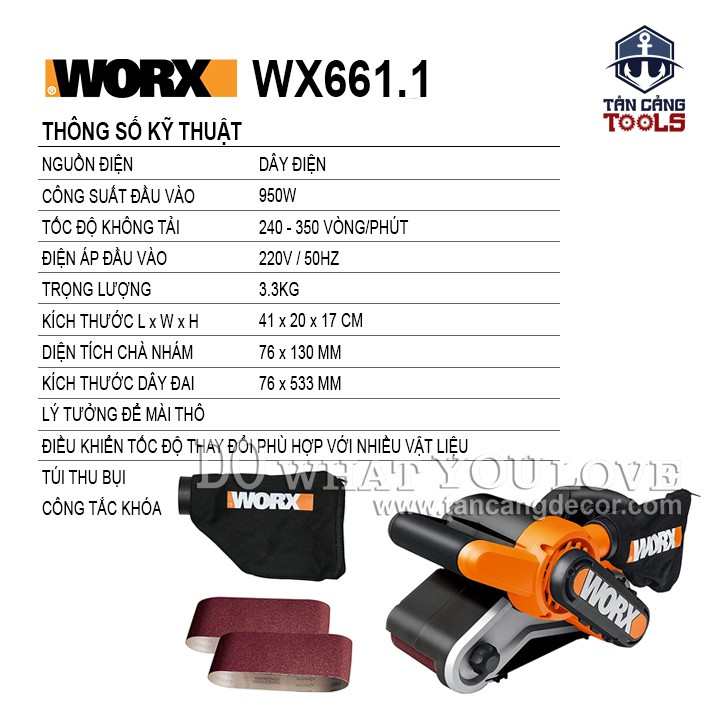 Giới thiệu Máy Chà Nhám Băng 6 Cấp 950W Worx WX661.1