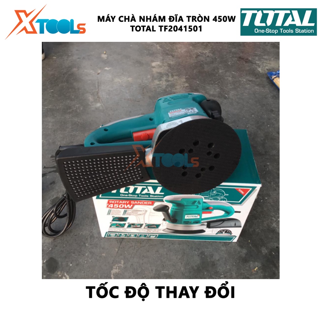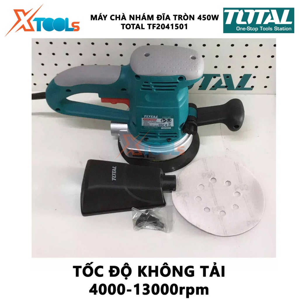 Nhà cửa & Đời sống > Dụng cụ & Thiết bị tiện ích > Dụng cụ > Giấy nhám, máy chà nhám và phụ kiện || Máy chà nhám đĩa tròn Total TF2041501 Thiết bị chà nhám đĩa cầm tay, Công suất 450W Tốc độ không tải: 4000-13000rpmCòn hàng