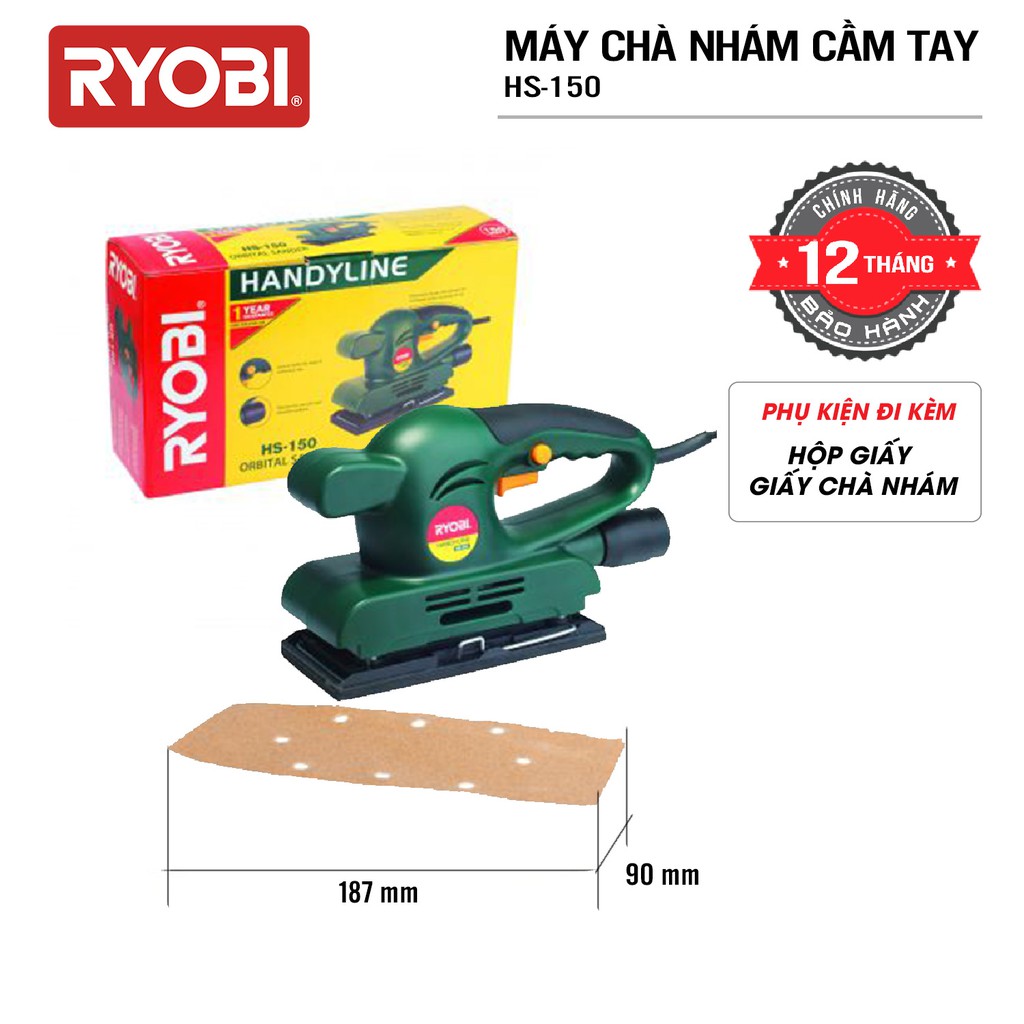 Nhà cửa & Đời sống > Dụng cụ & Thiết bị tiện ích > Dụng cụ > Giấy nhám, máy chà nhám và phụ kiện || Máy chà nhám rung cầm tay điện 150W RYOBI (KYOCERA) - HS-150 (Kèm Giấy chà nhám)Còn hàng