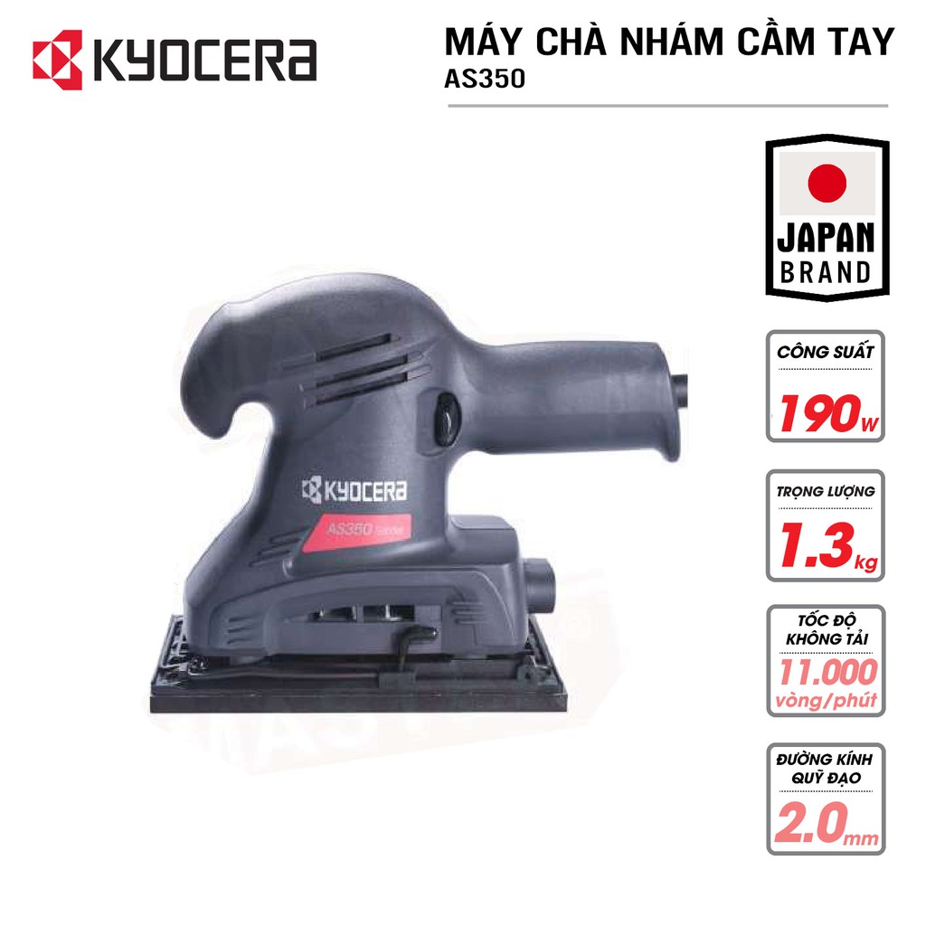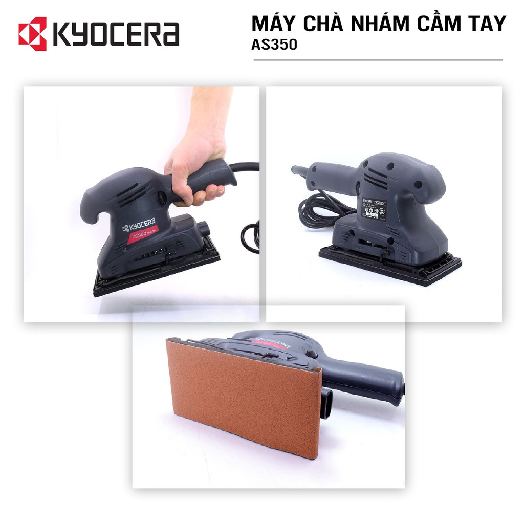 Nhà cửa & Đời sống > Dụng cụ & Thiết bị tiện ích > Dụng cụ > Giấy nhám, máy chà nhám và phụ kiện || Máy chà nhám rung vuông cầm tay KYOCERA - AS350 (Kèm Giấy chà nhám)Còn hàng