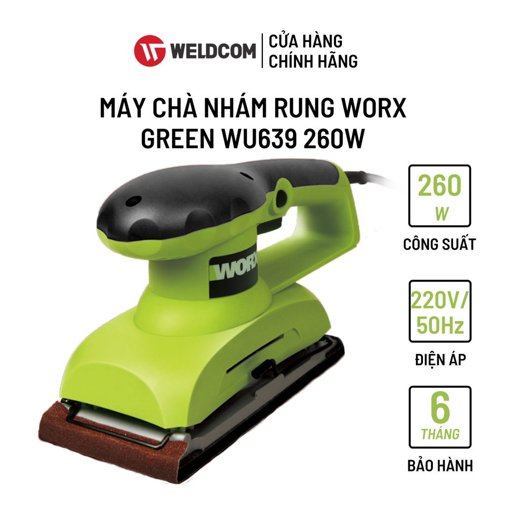Máy Chà Nhám Rung WORX GREEN WU639 Giúp Đánh Bóng Kim Loại Làm Nhẵn Vật Dụng 260WTHÔNG TIN SẢN PHẨM (Máy Chà Nhám Rung WORX GREEN WU639)