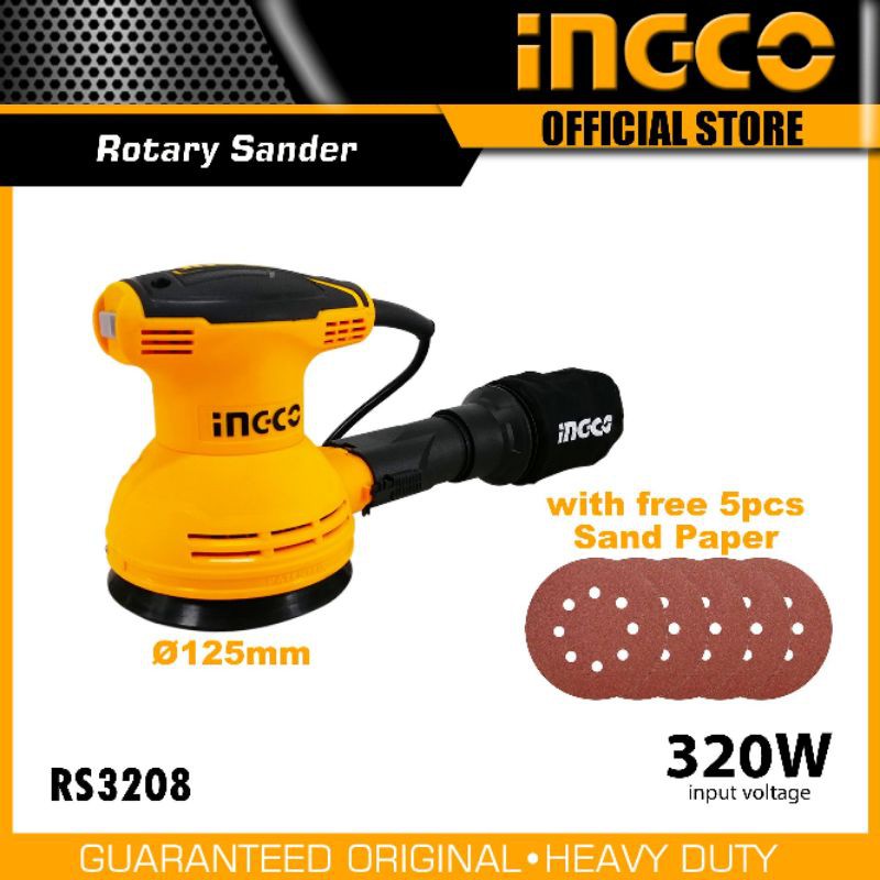 MÁY CHÀ NHÁM TRÒN 125MM CHÍNH HÃNG INGCO MODEL: RS3208- Điện thế: 220-240V ~ 50 / 60Hz