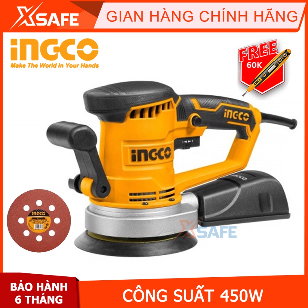 Máy chà nhám tròn INGCO RS4508 450W Máy chà cầm tay cao cấp, bền bỉ, tốc độ thay đổi, kèm miếng chà nhám PU 150mm
