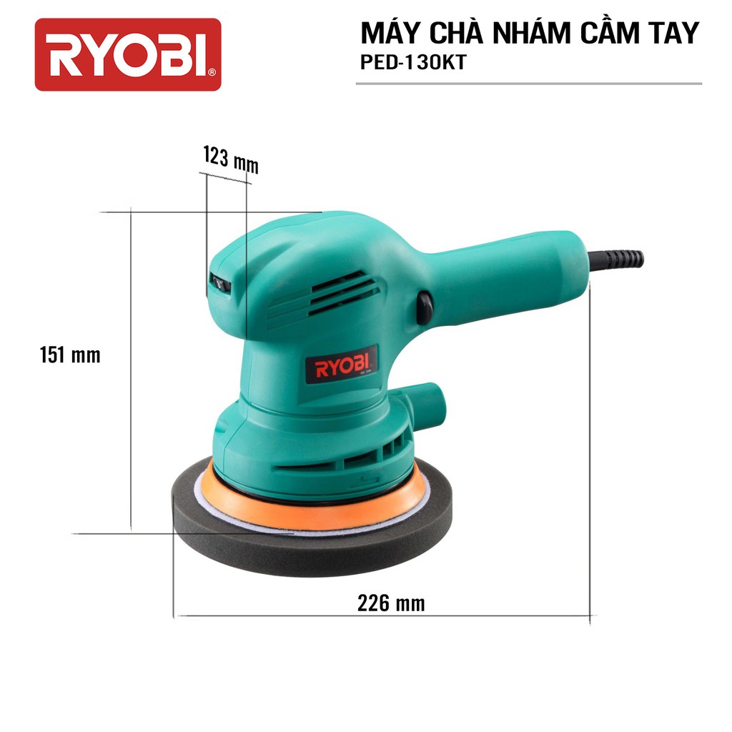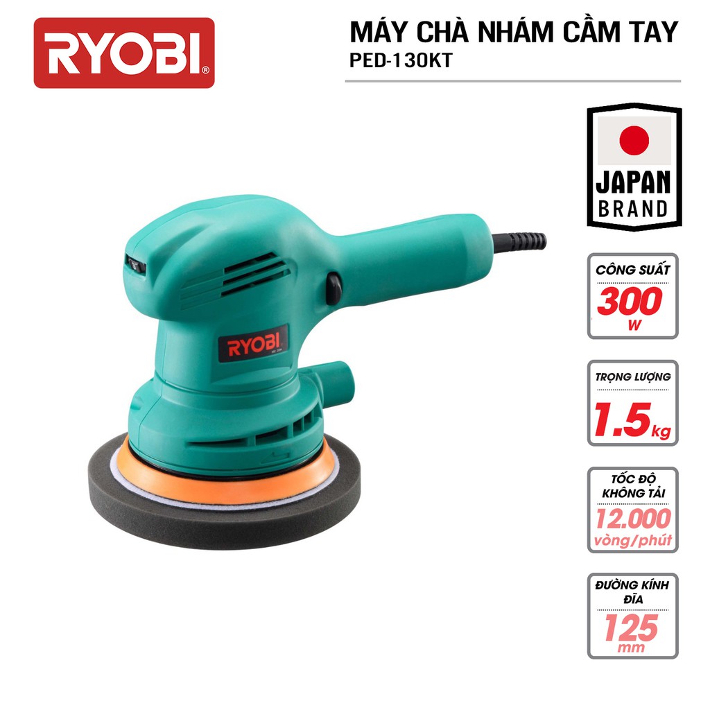 Giới thiệu Máy chà nhám và đánh bóng tròn cầm tay điện 300W RYOBI (KYOCERA)- PED-130KT (Kèm Linh kiện khác)