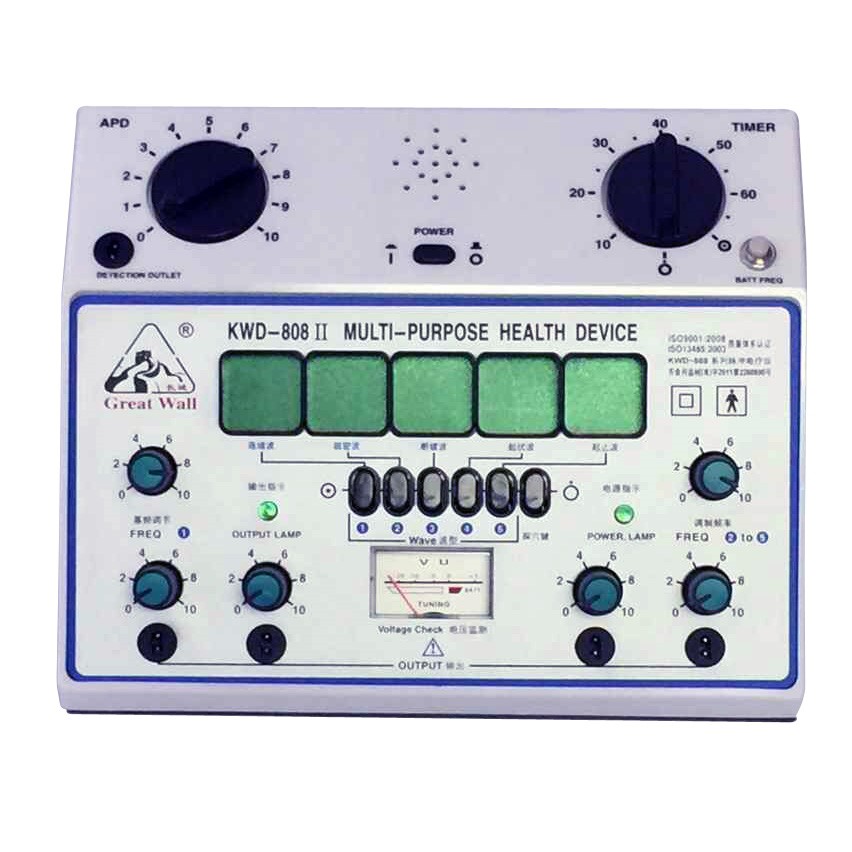 Máy châm cứu KWD-808-I giúp đỡ trong điều trị: Viêm khớp kinh niên, căng thẳng, chứng đau lưng, Nhức đầu, nhức răng, bệnh liệt dương, chứng mất ngủ, Đau vai, tê cóng tay chân, đau dây thần kinh sinh ba, Đau thần kinh tọa, mỏi thần kinh mắt và tay chân. -