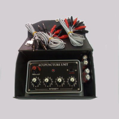 Với Acupuncture Unit cán bộ y tế y học dân tộc có sẵn trong tay một máy điện châm kích thích lên huyệt qua kim.
