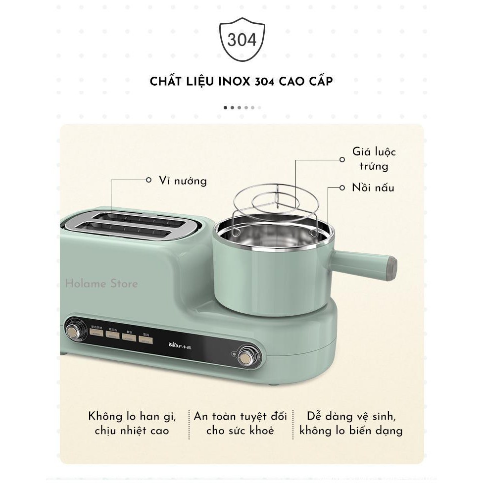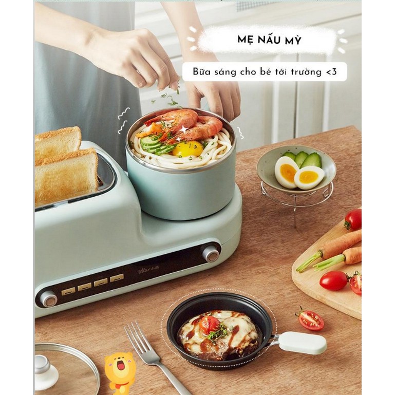 Máy chế biến thức ăn sáng nướng bánh mì có nồi nấu và chảo chiên làm đa năng Bear DSL-A02H3 🤗🤗