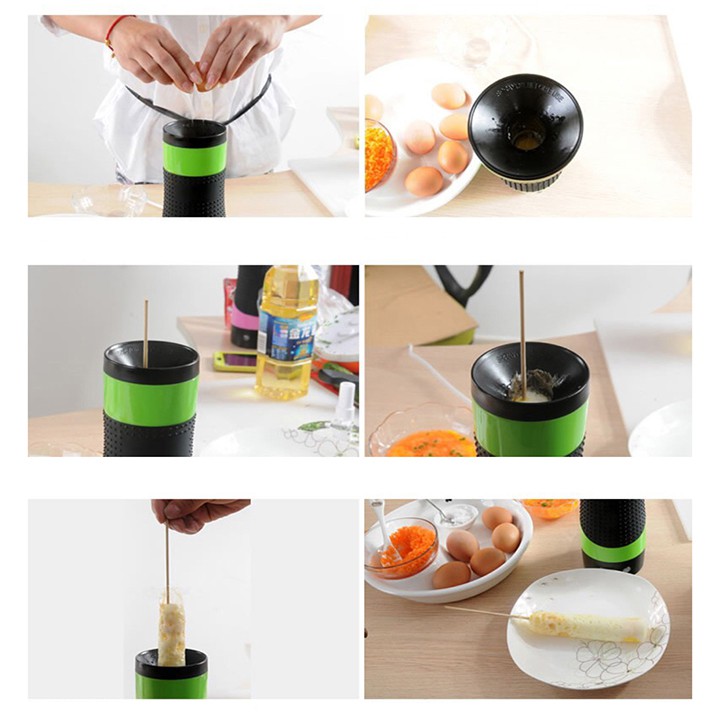 Bằng cách khai thác sức mạnh mới của Công nghệ Nấu ăn theo chiều dọc.Máy Làm Trứng Cuộn này tạo ra trứng chín một cách đều, thơm ngon , mềm và được làm chín một cách hoàn hảo . Và chỉ trong vài phút. Đơn giản chỉ cần cho buồng bên trong một spritz nhẹ dầu ăn, sau đó chỉ cần đập trứng ra và đổ vào bên trong khoang. Khi trứng đã chín, nó dần dần bắt đầu nổi lên trên, lúc này bạn nhìn nó sẽ giống như 1 cái xúc xích hoặc 1 cái kem vậy, thật thú vị đúng không nào