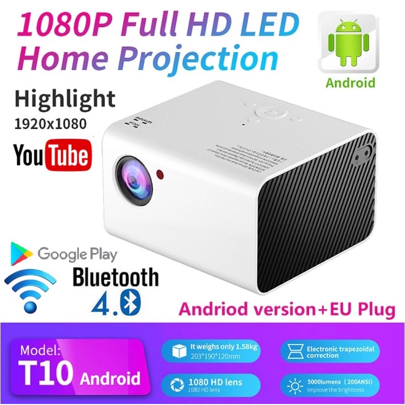 Máy chiếu Android gia đình độ phân giải thật Full HD 1080P - T10 mẫu mới 2021- Thiết kế nhỏ gọn, hiện đại, phù hợp cho phòng chiếu gia đình