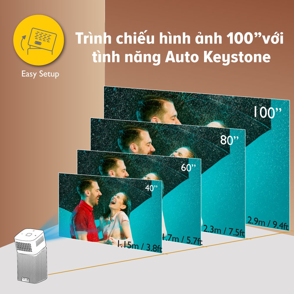 🔹 Kích thước chiếu (Lấy nét rõ ràng / Mức độ tối đa): 30"~100"