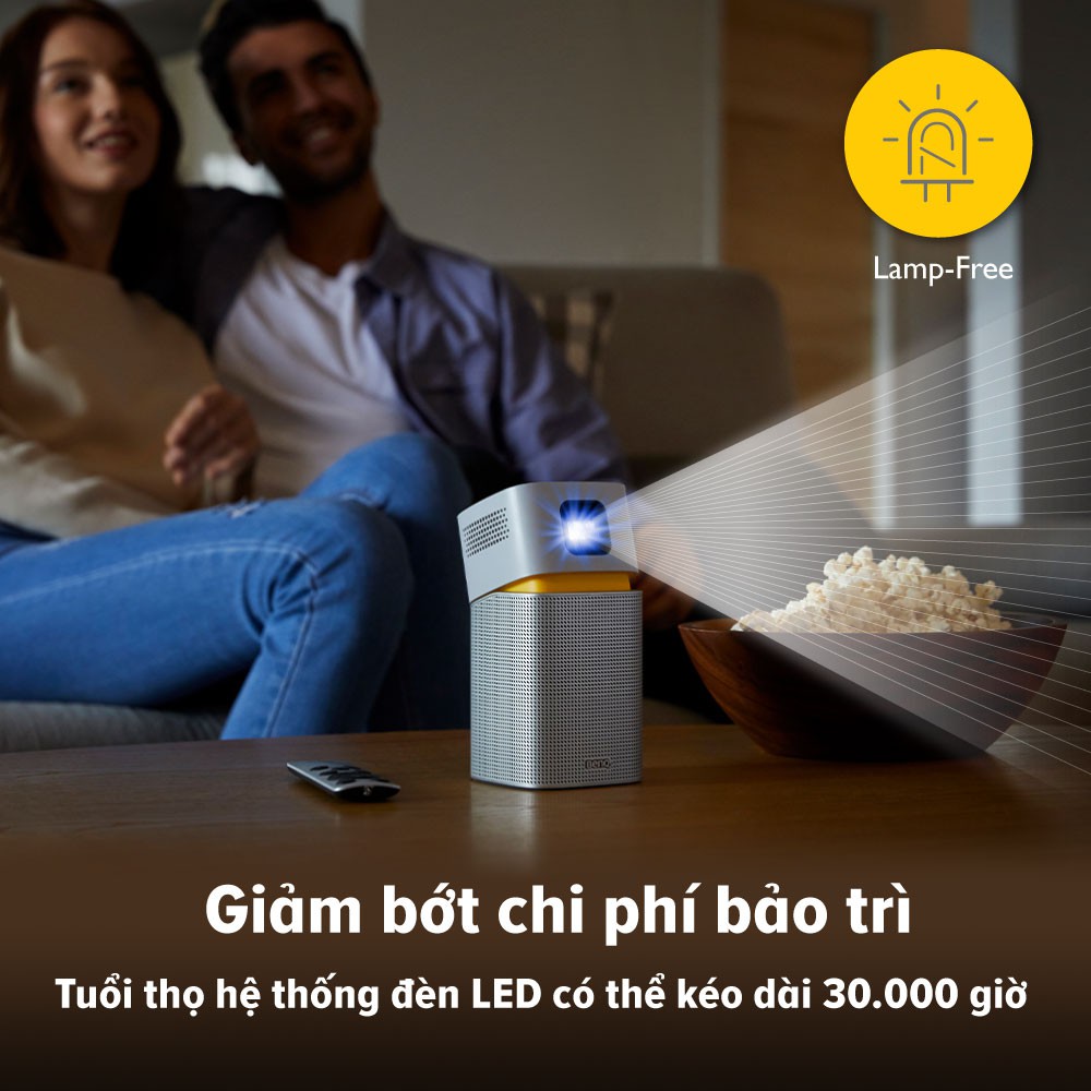 🔹 Đặc tính: Trình chiếu không dây (dành cho iOS / macOS, Android ™, PC), Cổng và đầu đọc USB-C ™, Ống kính 15∘Tiling Lens, Auto Keystone, Pin chạy trong 3 giờ, Loa không dây