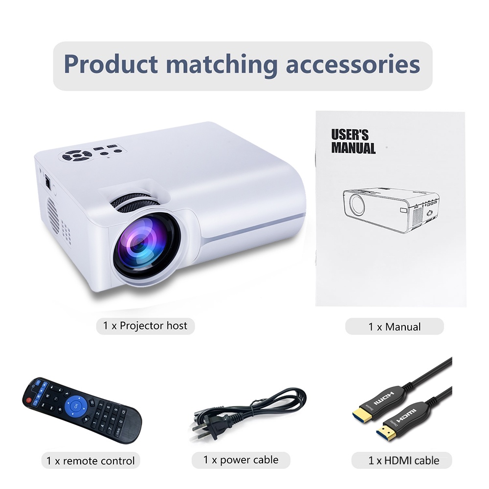 Phụ kiện: Máy chiếu x 1, Sách hướng dẫn sử dụng x 1, Điều khiển từ xa x 1, Cáp nguồn x 1, Cáp HDMI x 1