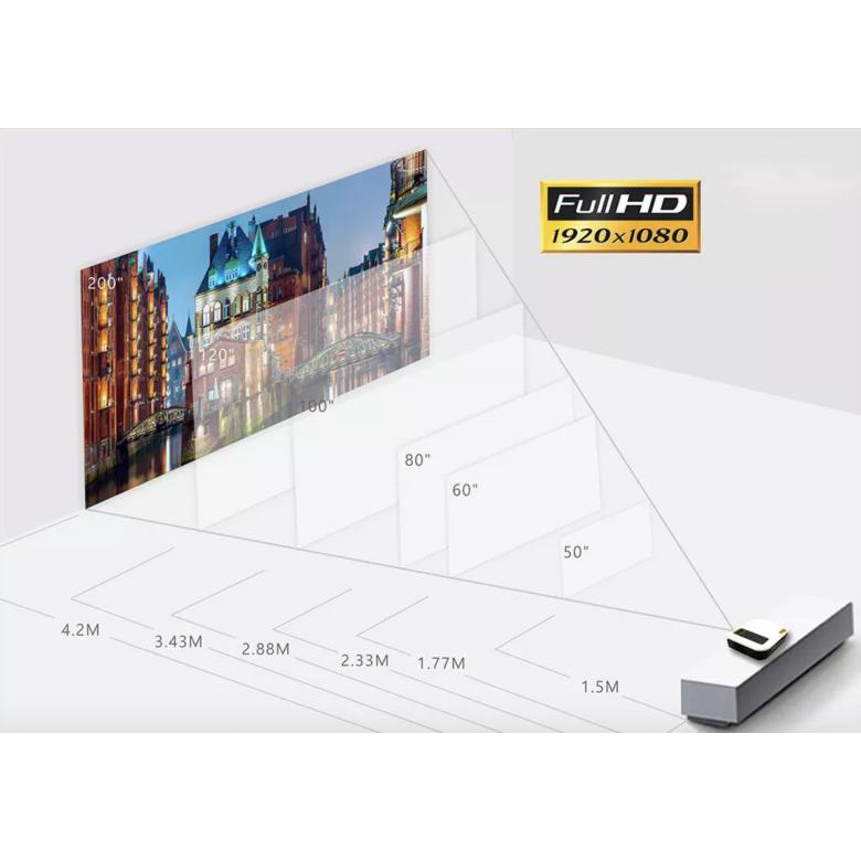 * Chiều dài chiếu từ máy ảnh đến màn chiếu : 1.2 - 4m