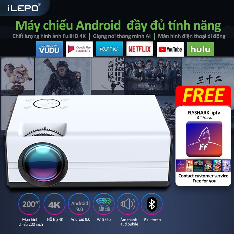 Máy chiếu mini máy chiếu full hd dành cho điện thoại hệ điều hành android 9.0 bảo hành 12 tháng T01A máy chiếu