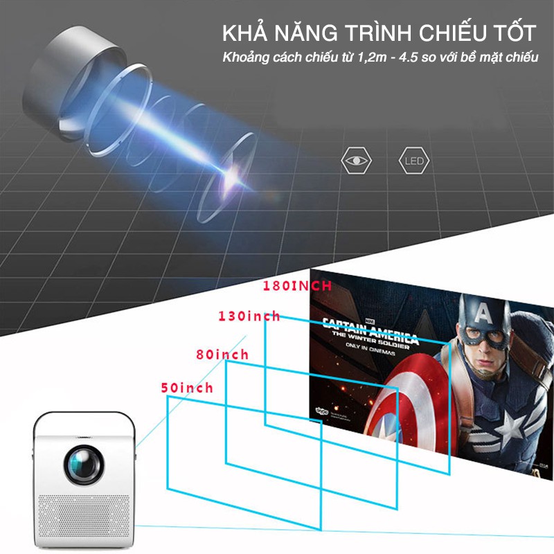 Máy Chiếu Mini, Máy chiếu phim điện thoại Độ Phân Giải Full HD, Loa Bluetooth, Nhiều Chế Độ, 30.000 Giờ, Bảo Hành 1 Năm