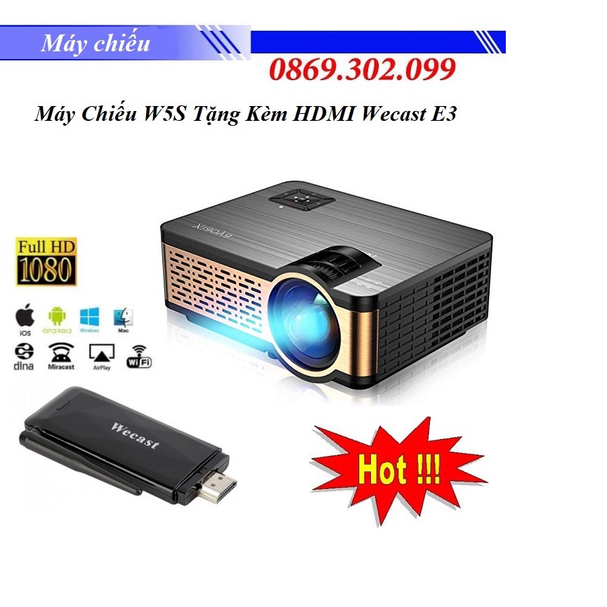 Máy Chiếu Mini W5S: Siêu Nét Chất Lượng Cao Chạy Hệ Điều Hành Android Tặng Kèm HDMI Không Dây Wecast E3