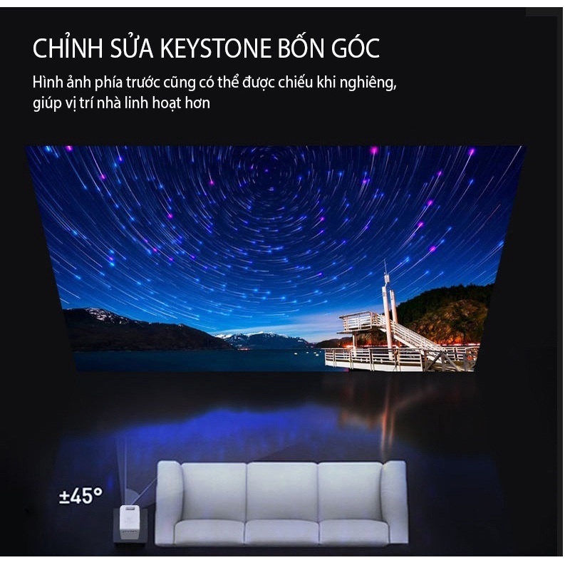 Projetion Kích thước và khoảng cách: 44-140inch,1.5- 4.5 mét (Tốt Nhất trong 60inch,1.5m)