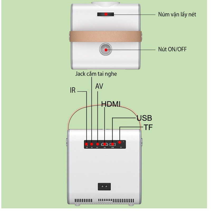 Hỗ trợ HDMI USB TF giắc cắm tai nghe AV có thể được liên kết với điện thoại di động, máy tính, dàn âm thanh nổi, đĩa U và ổ cứng di động. Máy chiếu siêu nhỏ, dễ dàng mang theo nhưng có thể lắp đặt với kích thước 100 inch là lựa chọn tốt để xem phim tại nhà, mang đi du lịch hay trình chiếu nội dung trong các cuộc họp.