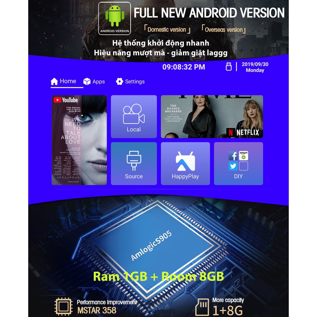 - Hệ điều Hành Android với CPU MSTAR358 RAM 1GB ROM 8GB