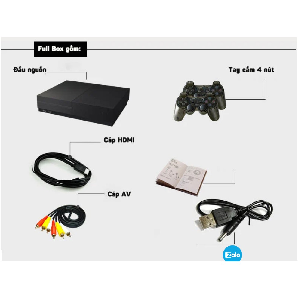 Cấu hình tiêu chuẩn: hộp x1, dây nguồn x1, cáp AV x1, cáp HDMI x1, sách hướng dẫn x1, tay cầm có dây x2 (không có đầu sạc)
