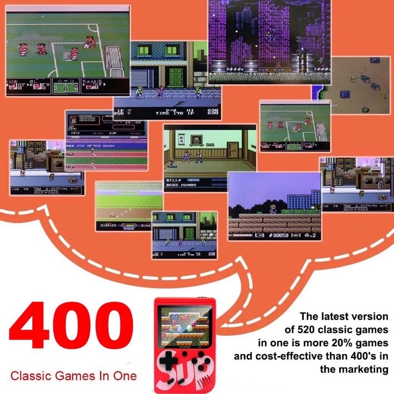 Gaming & Console > Máy chơi game > Khác || MÁY CHƠI GAME 4 NÚT CẦM TAY SUP GAME BOX 400 IN 1 PLUSCòn hàng