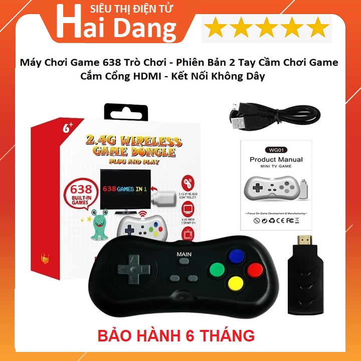 Máy Chơi Game 638 Trò Chơi, Không Dây Tiện Lợi Kết Nối Cổng HDMI - Máy Phiên Bản 2021Đặc điểm: máy chơi game kết nối không dây.