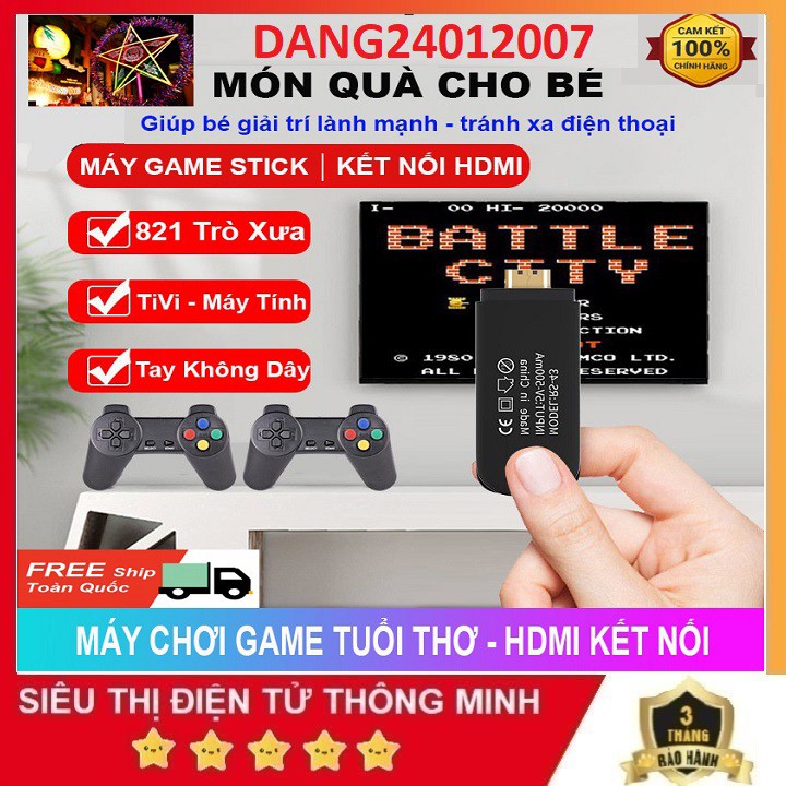 Máy Chơi Game 821 Trò Chơi Trẻ Em, Stick HDMI, Game 4 Nút Station, Tặng Thẻ Nhớ Kèm 2 Tay Cầm Không Dây