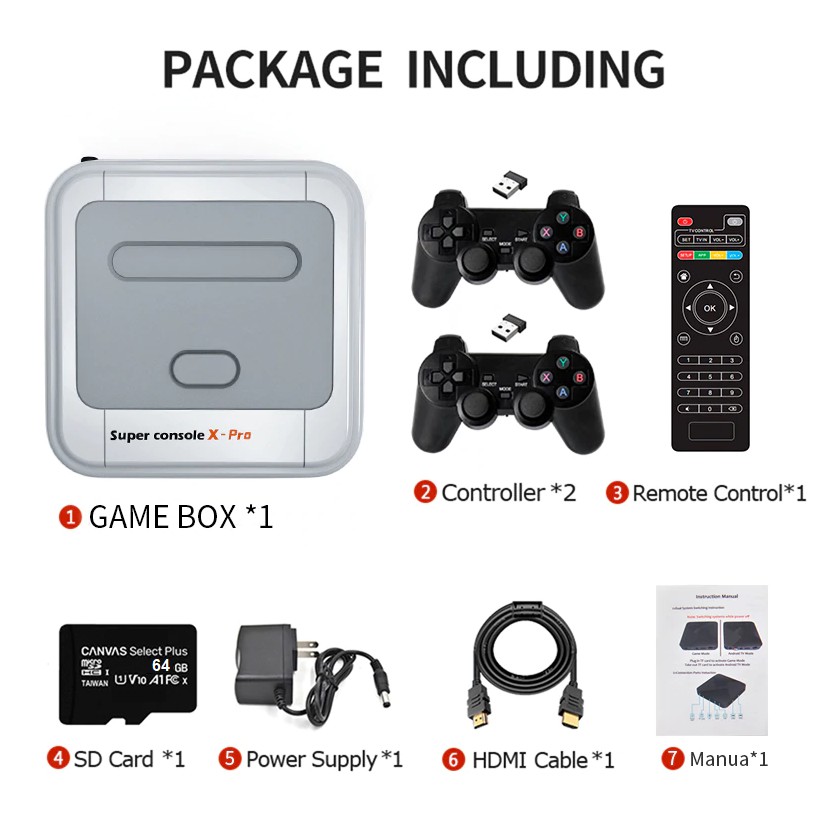 Máy Chơi Game Android Tivi Box 2in1 - SUPER CONSOLE X 2021 - 64GB - 2 TAY CẦM KHÔNG DÂY - 30000 GAME