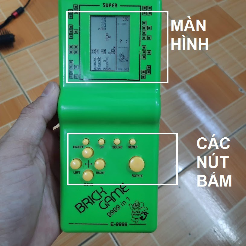 Giới thiệu Máy chơi game cầm tay E 999 bằng nhựa sử dụng pin AA Brick Game