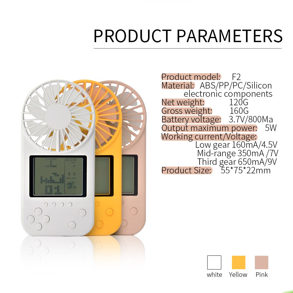 Máy chơi game cầm tay F2 có sẵn 26 game cổ điển kèm quạt tích điện 6h sử dụng liên tụcĐa chức năng máy chơi game, quạt/Tay cầm chơi game, tất cả trong một, vui vẻ và thiết thực.