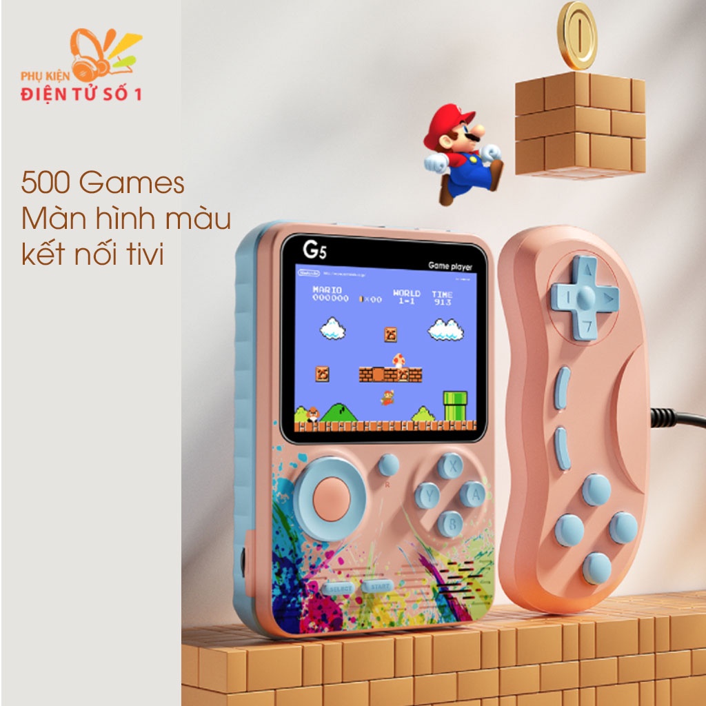 Máy Chơi Game Cầm Tay 500 Trò Chơi G5 sử dụng 2 Người Sử Dụng Kết Nối Tivi Âm Thanh Hình Ảnh Rõ Nét .Kho chứa 500 games khổng lồ cho bạn thỏa mãn giải trí sáng tạo với nhiều game hấp dẫn.Thông tin sản phẩm: