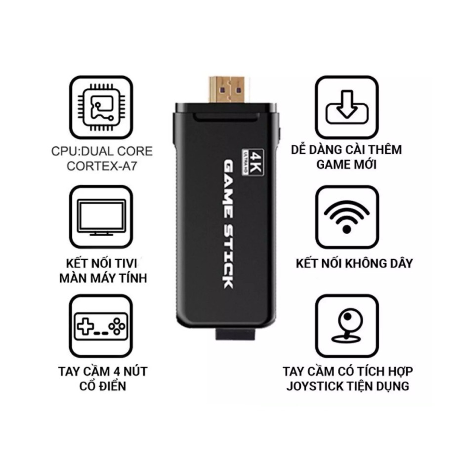 👉 Game Stick nhỏ gọn nhưng có sẵn 3500 trò chơi kinh điển của tuổi thơ, tổng hợp từ các dòng máy rất nổi tiếng với thế hệ 7x,8x như: Mame (điện tử thùng), PS1, GB..v..v…Bạn sẽ dễ dàng tìm thấy tất cả các tựa game huyền thoại: Contra, Battle City (bắn tank), Super Mario, Mortal Kombat, Metal Slug (rambo lùn)…👉 ĐẶC ĐIỂM NỔI BẬT