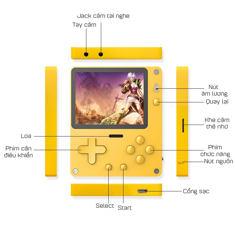 Thời Gian Chờ Lâu:Tích Hợp Pin Lithium Có Thể Sạc Lại, Thời Gian Chờ Lâu. Khi Bạn Đi Công Tác, Du Lịch, Cắm Trại, Bạn Không Phải Lo Lắng Về Việc Hết Điện. Máy Chơi Game Đa Chức Năng, Cũng Hỗ Trợ Phát Video Và Phát Nhạc. Với Giao Diện 3.5Mm Và 1 Cặp Tai Nghe.