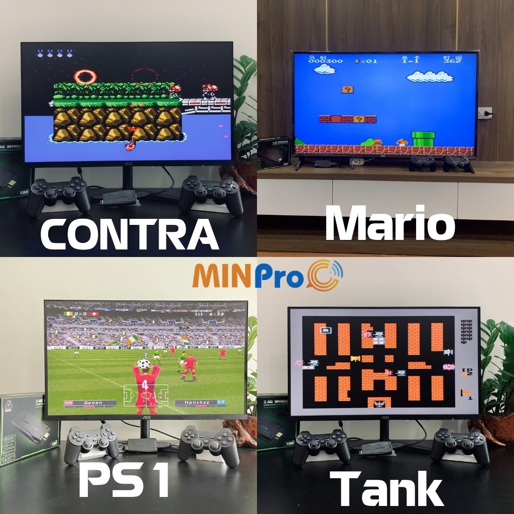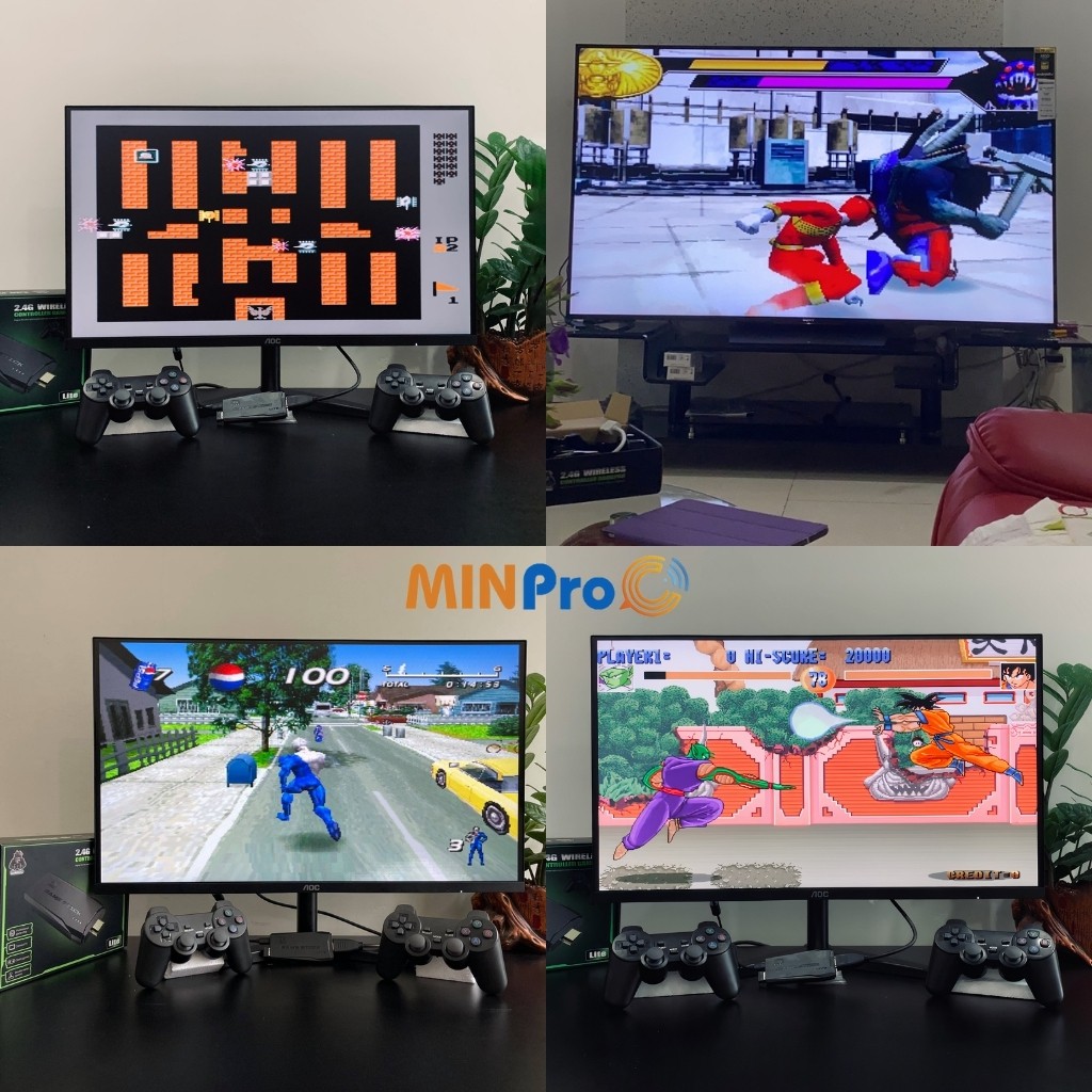 - Game Stick nhỏ gọn nhưng có sẵn 3500 trò chơi kinh điển của tuổi thơ, tổng hợp từ các dòng máy rất nổi tiếng với thế hệ 7x,8x như: Mame (điện tử thùng), PS1, GB..v..v…Bạn sẽ dễ dàng tìm thấy tất cả các tựa game huyền thoại: Contra , Super Mario , rambo lùn , ….
