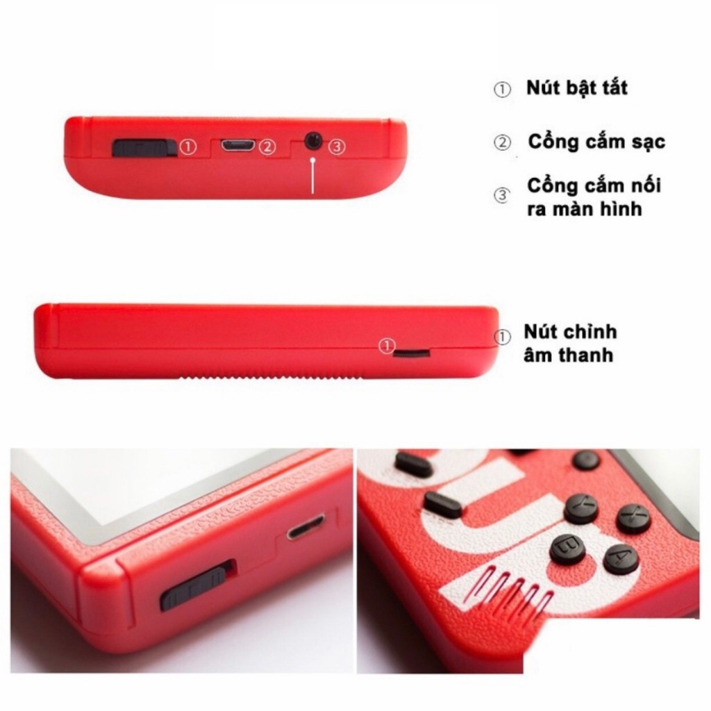 5.Nếu bạn có bất kỳ vấn đề về sản phẩm của chúng tôi, xin vui lòng không ngần ngại liên hệ với chúng tôi, chúng tôi sẽ phản hồi cho bạn trong thời gian ngắn nhất khi có thể! Ôn lại tuổi thơ với chiếc máy chơi game điện tử 4 nút ngày xưa đã để lại rất nhiều kỉ niệm trong lòng mỗi người thời 8x, 9x. Máy được tích hợp sẵn 400 game Retro bao gồm #Mario #Contra #Natra cứu mẹ,... Trang bị màn hình màu LCD 3-inch chơi game cực đã. Bảng điều khiển 4 nút hệt như game máy game thùng, điện tử 4 nút ngày xưa. Có thể truyền hình ảnh, âm thanh lên TV thông qua cổng AV. Thời lượng pin khoảng 2-3 giờ chơi.