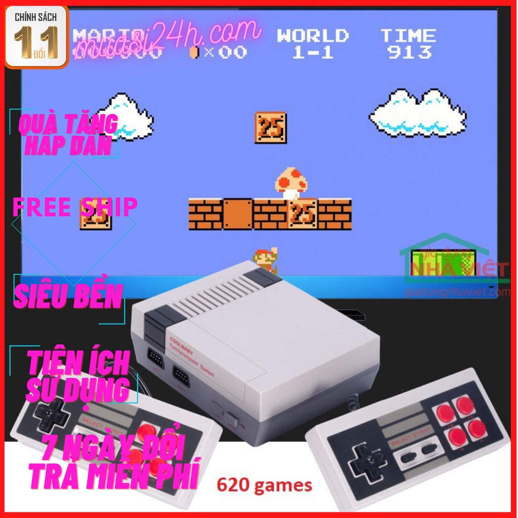 Máy Chơi Game Cổ Điển NES 8 Bit Có 620 Game Kèm 2 Tay Cầm Rời Dây AV Sang Tivi Và Adapter