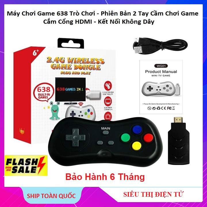 Bộ Máy Chơi Game Không Dây, 16 Bit 638 Trò Chất Lượng Cao - Máy Chơi Game 2 Người Chơi - Model 2021Đặc tính: "máy chơi game 638 trò"