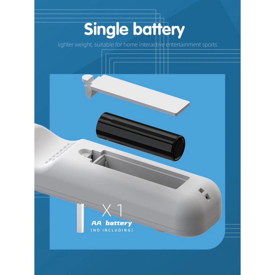 - Thiết kế tay cầm dùng pin đơn, trọng lượng nhẹ hơn, thích hợp cho các môn thể thao giải trí tương tác tại nhà trong một