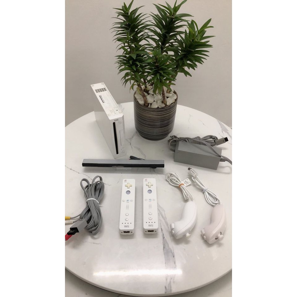 Bộ Wii gồm full phụ kiện nguồn AV, 2 tay cầm, nunchuck, sensor... Các anh chị có thể chọn mua thêm ổ cứng HDD copy full 320GB game và Bộ dùng HDMI cắm vào TV cho tiện lợi.
