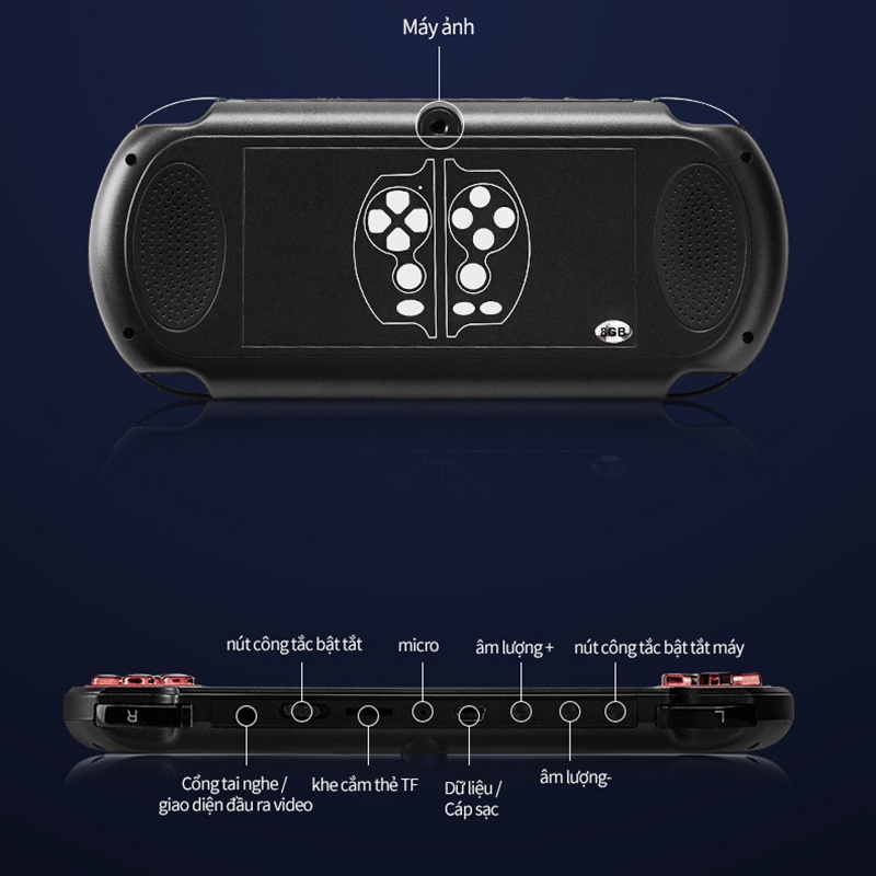 Máy chơi game X7 cầm tay màn hình 5.1 inch 8G - 900 game Siêu Ngon mượt mà Hỗ Trợ TF Chất Lượng Cao