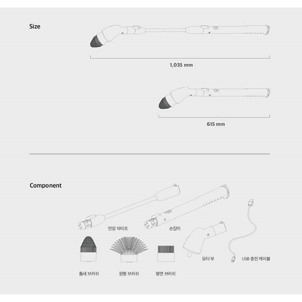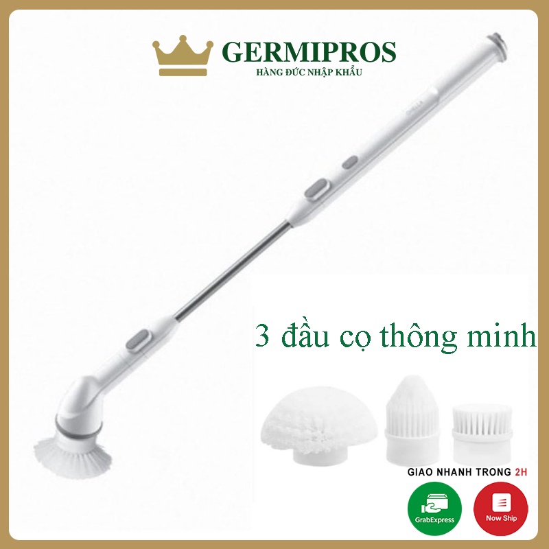 - Với 3 đầu cọ đa năng không thấm nước phù hợp với tất cả các vị trí cần tẩy rửa. Làm sạch từ sàn nhà, bồn rửa cho tới vách ngăn kính, lavabo...
