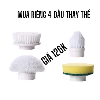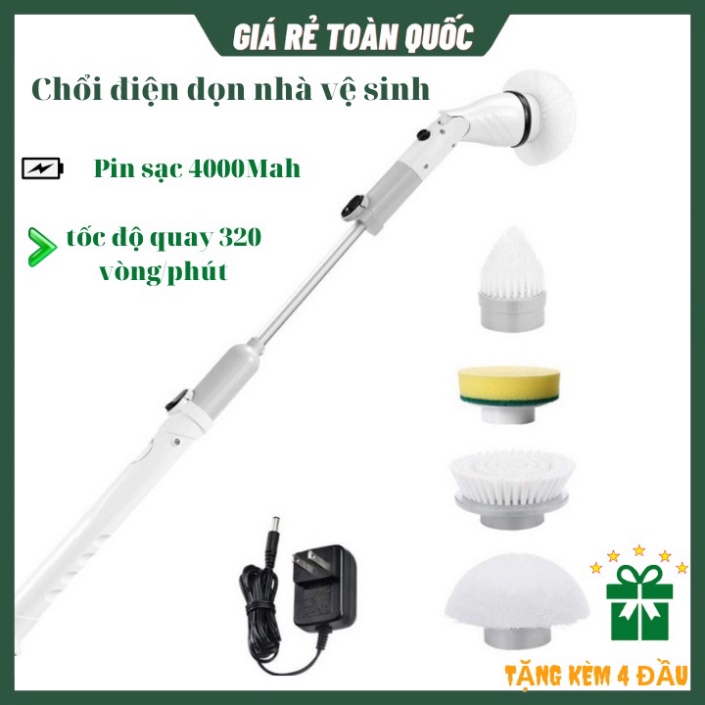 Chổi Cọ Nhà Vệ Sinh Bồn Cầu Toilet Bằng Điện Bàn Chải Làm Sạch Vệ Sinh Nhà Tắm Không Dây Kèm Với 4 Đầu Thay Thế Tiện Lợi
