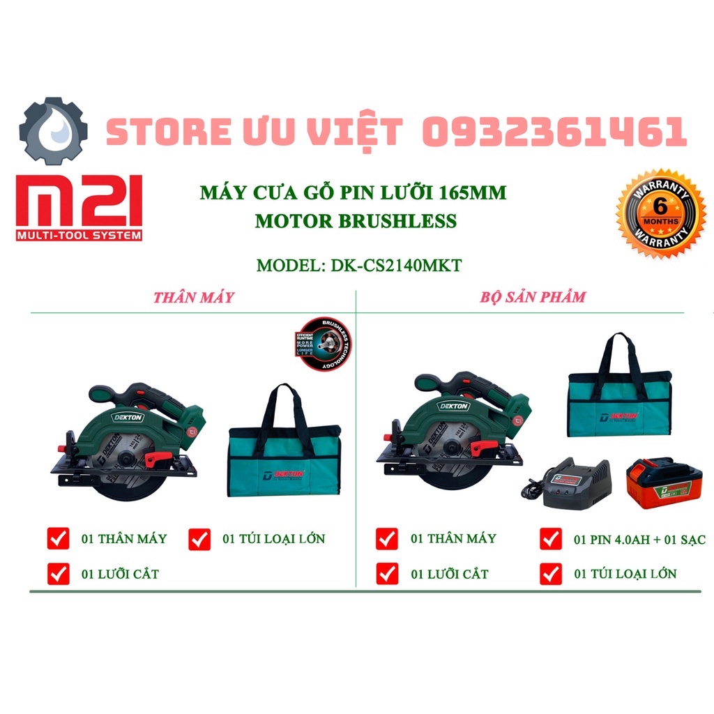 MÁY CƯA GỖ PIN 165mm CHẠY MÔ TƠ TỪ KHÔNG CHỔI THAN CHÍNH HÃNH DEKTON MODEL: DK-CS2140MKT GIÁ TỐT