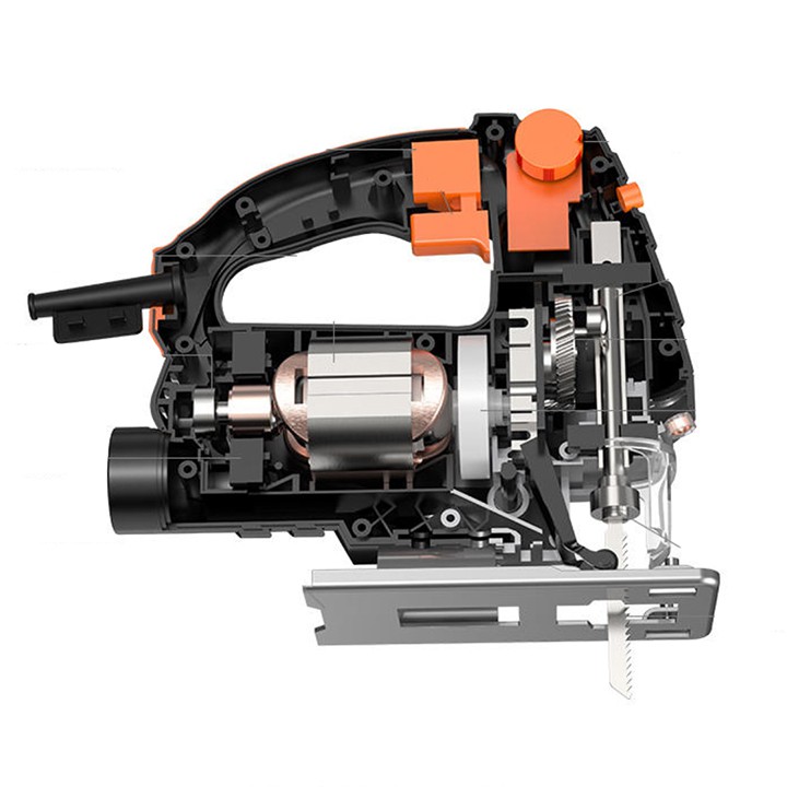 Máy cưa lọng có công suất lớn đến 710W nhưng trọng lượng lại nhẹ nhàng và thiết kế nhỏ gọn giúp bạn không bị mỏi tay khi làm việc lâu. Ngoài ra, với ưu điểm này máy cưa lọng còn dễ dàng cất giữ, bảo quản và di chuyển mà không gây cản trở, chiếm diện tích. Tay nắm dạng khuôn, tròn với các gợn sóng giúp bạn thực hiện thao tác cắt nhẹ nhàng và không bị mỏi tay. Phụ kiện đi kèm như lưỡi cưa, vành chắn mảnh vụn và dụng cụ bắt vít hỗ trợ bạn trong các công việc một cách hoàn hảo nhất.