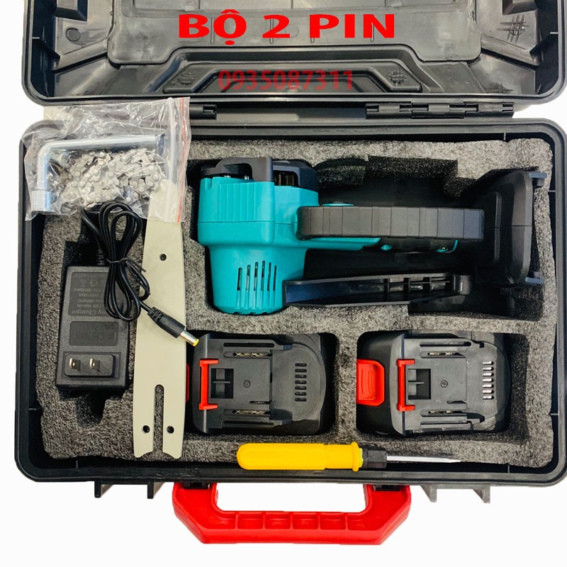 BÔ 2 PIN: 1 HỘP Nhựa,1 THÂN MÁY,1 TUA VÍT,1 THÁO ỐC,1 Lò So,1 MIẾNG BẢO VỆ,1 LAM,1 LƯỠI XÍCH,2 PIN 5 CELL 1500MAH,1 SẠC ĐẾ 2A