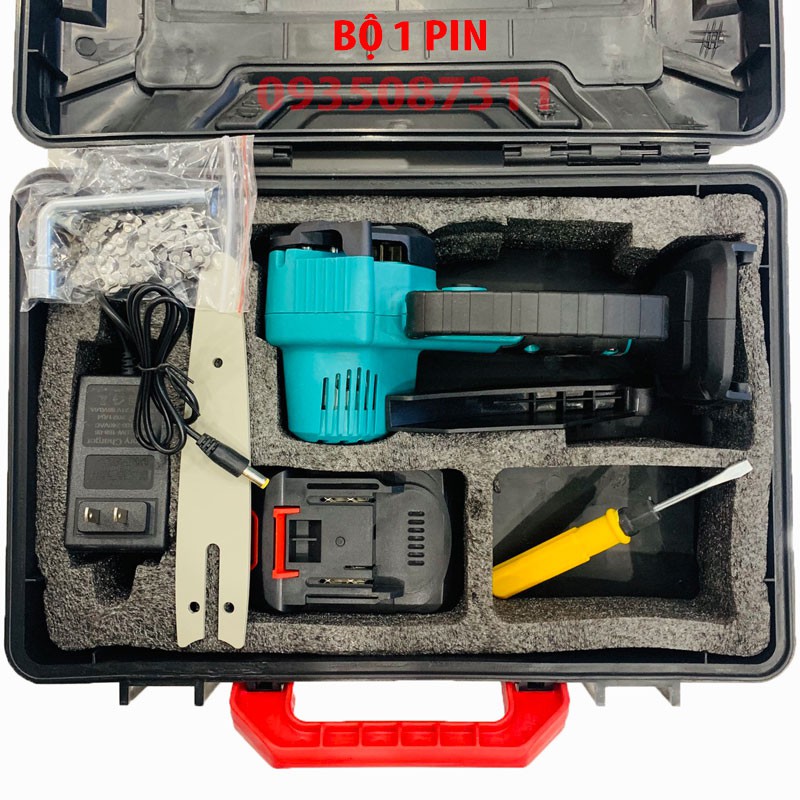 BỘ 1 PIN: 1 HỘP Nhựa,1 THÂN MÁY,1 TUA VÍT,1 THÁO ỐC,1 Lò So,1 MIẾNG BẢO VỆ,1 LAM,1 LƯỠI XÍCH,1 PIN 5 CELL 1500MAH,1 SẠC ĐẾ 2A
